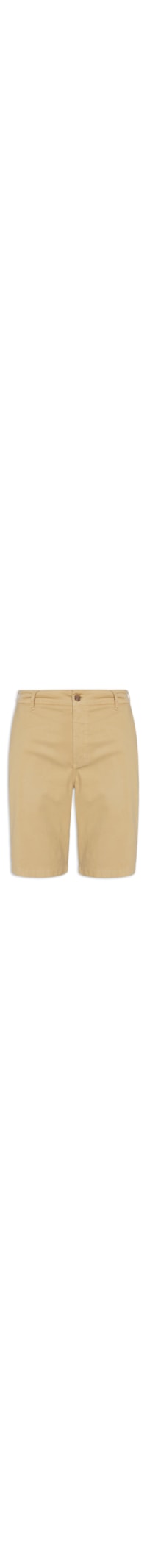 A bermuda bege é confeccionada em sarja com média elasticidade. A peça solta ao corpo possui cós com passantes, bolsos frontais modelo faca, recortes posteriores, bolsos posteriores embutidos com fechamento por botão e fechamento frontal por botão e zíper
