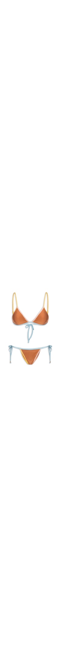 O biquíni laranja é confeccionado em malha de poliamida com baixa elasticidade. O top de modelo cortininha possui alças finas alongadas, laterais finas, detalhes em cores contrastantes, bojo removível e fechamento posterior por amarração. A calcinha possui cintura baixa, laterais finas alongadas, detalhes em cores contrastantes e forro.