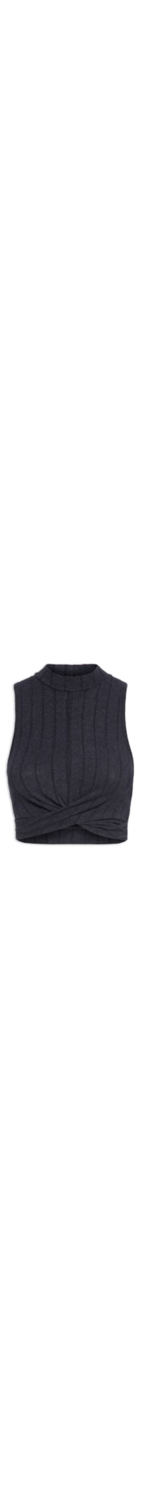 A blusa preta é cofeccionada em tecido de malha canelada de média elasticidade. A peça justa ao corpo possui decote redondo, gola alta, sem bojo, cavas regulares, detalhe frontal de transpasse, cavas regulares, logo da marca estampado na parte posterior, comprimento cropped, sem forro, sem fechamento.