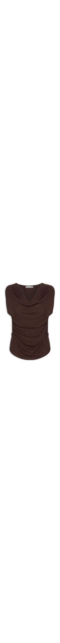 A blusa marrom é confeccionada em tricot com média elasticidade. A peça solta ao corpo possui decote degagê, alças largas e cavas regulares.