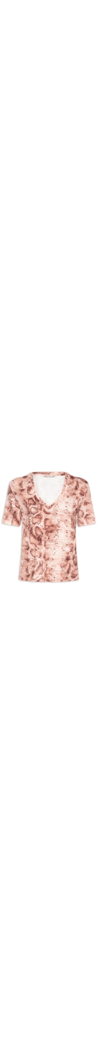 A blusa rosa é confeccionada em malha leve com média elasticidade. A peça possui decote em V, mangas curtas, ombros regulares e estampa animal print em cor contrastante.