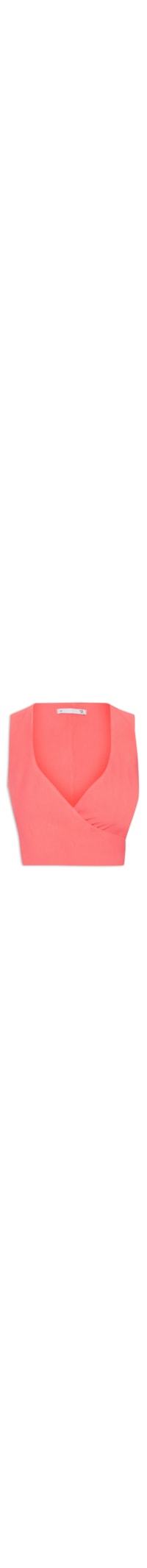 A blusa rosa é confeccionada em crepe. A peça possui decote V transpassado, alças médias, cavas regulares, recorte posterior, pences frontais, forro, faixas alongadas na altura da barra sobrepondo na parte posterior com fechamento por botões, comprimento cropped* e shape solto.