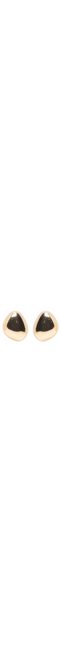 O brinco dourado é produzido em metal. A peça possui tamanho grande, formato assimétrico, acabamento polido e fechamento posterior por tarraxa.