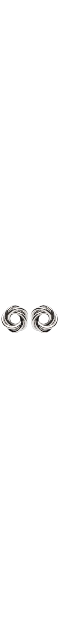 O brinco prateado é produzido em metal. A peça possui tamanho médio, formato arredondado, recortes sobrepostos, acabamento polido e fechamento posterior por tarraxa.