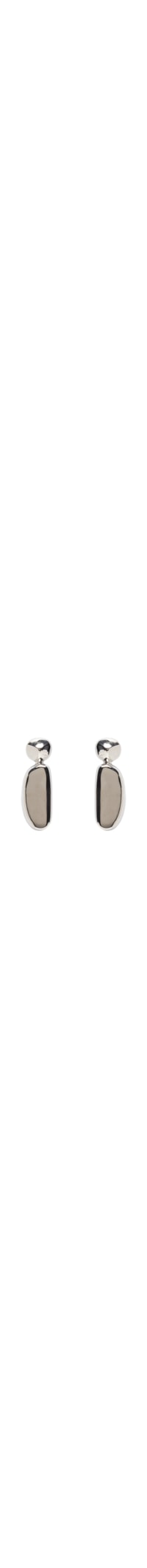 O brinco prateado é produzido em metal. A peça possui tamanho médio, base arredondada, formato alongado e fechamento posterior por tarraxa.