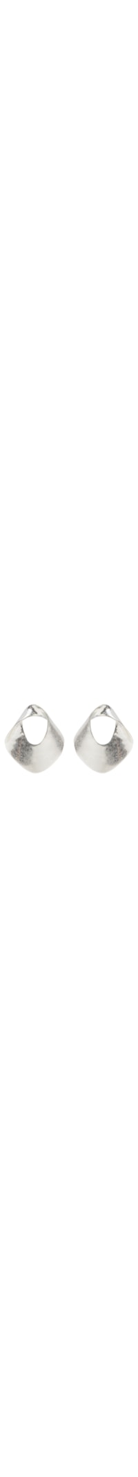 O brinco prateado é produzido em metal. A peça possui tamanho grande, forma orgânica, acabamento fosco e fechamento posterior por tarraxa.