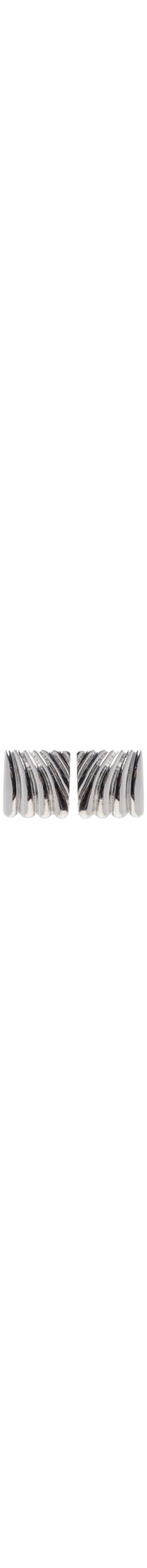O brinco prateado é produzido em metal. A peça possui tamanho médio, formato quadrado, acabamento texturizado e fechamento posterior por tarraxa.