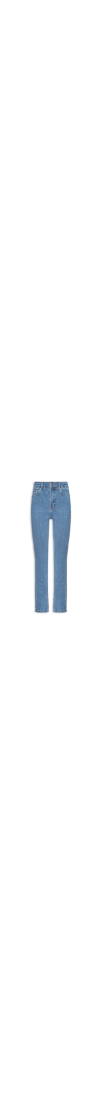 A calça azul é confeccionada em sarja com lavagem jeans sem elasticidade. A peça justa ao corpo de modelo skinny* possui cintura alta, cós com passantes e tag da marca aplicada na parte posterior, five pockets*, recorte posterior, comprimento longo e fechamento frontal em zíper e botão.