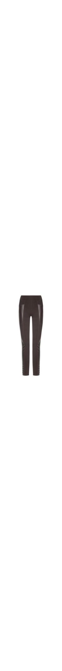 A calça marrom é confeccionada em tecido leve com baixa elasticidade. A peça justa ao corpo modelo skinny* possui cintura alta, cós com elástico embutido e passantes e recortes frontais.