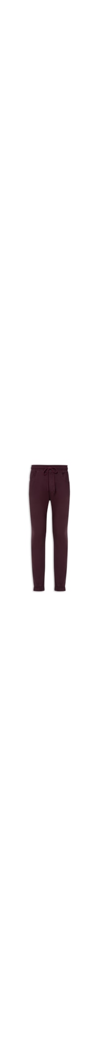 A calça vinho é confeccionada em sarja. A peça modelo jogger* possui cintura média, cós com elástico embutido para ajuste e amarração, bolsos frontais e posteriores, comprimento longo, shape solto, caimento reto e acabamento pespontado.