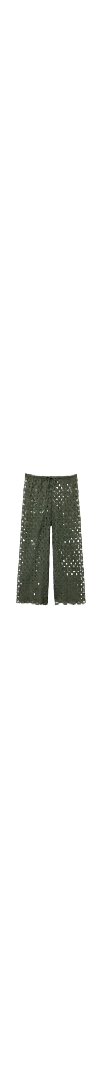 Calça pantalona em crochê fino, com um sofisticado padrão geométrico e cordão na cintura. O design fluido valoriza a silhueta com elegância, enquanto o desenho exclusivo acrescenta um toque de originalidade e estilo. Perfeita para usar por cima do biquíni ou maiô, ou como parte de um conjunto de verão combinada ao top 0BDA165.