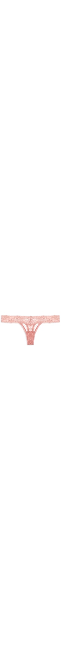 A calcinha rosa é confeccionada em renda. A peça de modelo tanga possui laterais médias, transparência, forro, e tag da marca aplicada em metal na parte posterior.