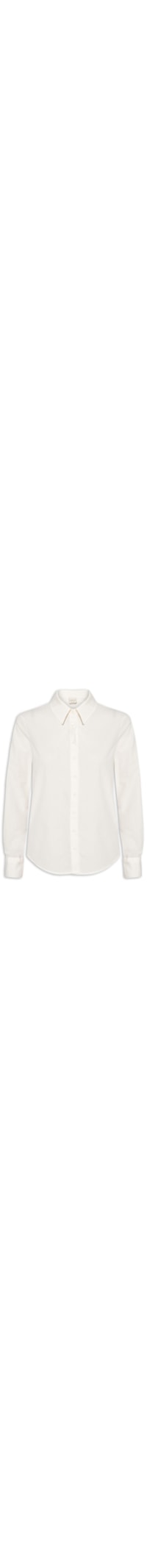 A camisa off white é confeccionada em tecido leve sem elasticidade. A peça solta ao corpo possui colarinho clássico, mangas longas com abotoamento nos punhos, recorte posterior com prega e passante aplicado, barra arredondada, leve transparência e fechamento frontal por botões.