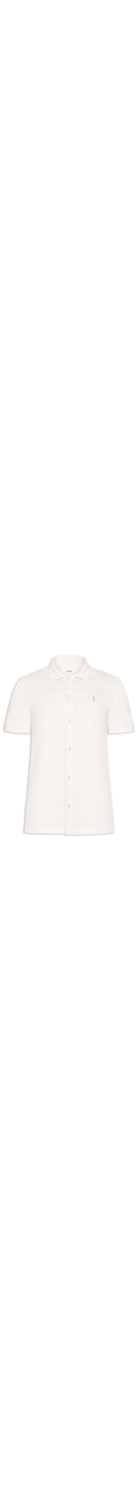 A camisa off white é confeccionada em tricot com toque de linha e alta elasticidade. A peça solta ao corpo possui colarinho clássico, mangas curtas, logo da marca bordado na altura do tórax, pequenas fendas laterais, leve transparência e fechamento frontal por botões.