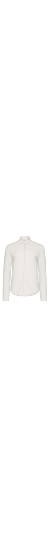 A camisa off white é confeccionada em malha com alta elasticidade. A peça de modelo slim fit que se ajusta levemente ao corpo possui colarinho francês, mangas longas com abotoamento nos punhos, recorte posterior e fechamento frontal por botões.