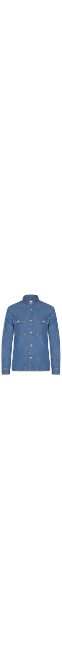 camisa azul é confeccionada em tecido leve sem elasticidade. A peça possui colarinho americano, mangas longas com abotoamento nos punhos, bolsos frontais com aba sobreposta e fechamento por botão e fechamento frontal por botões.
