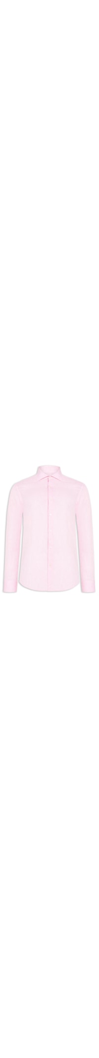 A camisa rosa é confeccionada em linho misto sem elasticidade. A peça solta ao corpo possui colarinho clássico, mangas longas com abotoamento nos punhos, recorte posterior e fechamento frontal por botões.