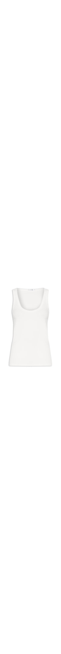 A camiseta branca é confeccionada em malha de viscose com alta elasticidade. A peça justa ao corpo possui decote U, alças me´dias, cavas regulares, fendas laterais e acabamento canelado.