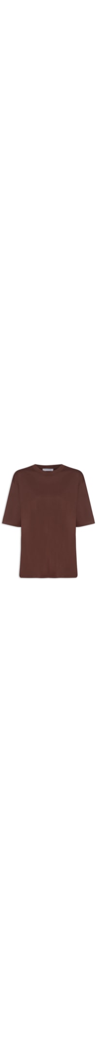 A camiseta marrom é confeccionada em malha de algodão sem elasticidade. A peça solta ao corpo modelo oversized* possui gola careca com acabamento canelado, mangas curtas, ombros estendidos, shape oversized, comprimento alongado, barra reta e acabamento pespontado.