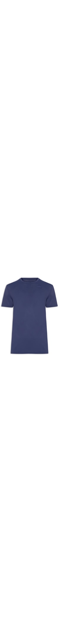 A camiseta azul é confeccionada em malha de poliamida com alta elasticidade. A peça solta ao corpo possui gola careca, mangas curtas e logo da marca aplicado na parte frontal.