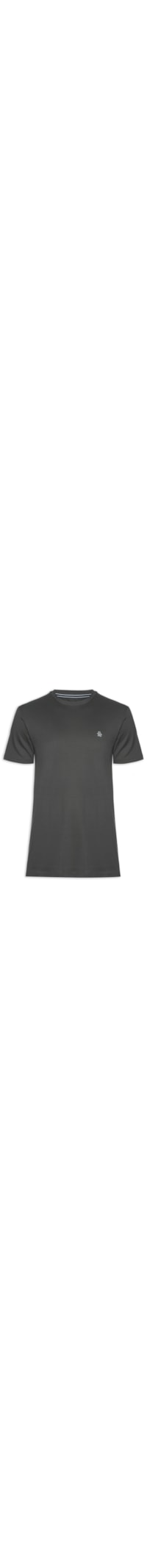 A camiseta cinza é confeccionada em malha de algodão de média elasticidade. A peça solta ao corpo, possui gola careca com acabamento canelado, mangas curtas e logo da marca bordado na altura do tórax em cores contrastantes.