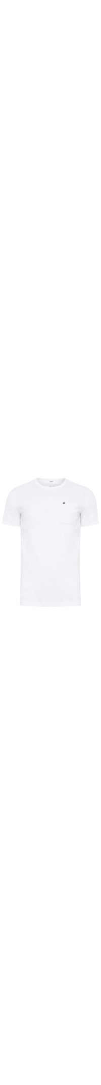 A t-shirt branca é confeccionada em malha de algodão. A peça possui gola careca, mangas curtas, bolso frontal na altura do tórax com tag da marca aplicada, shape solto, caimento reto e acabamento pespontado.
