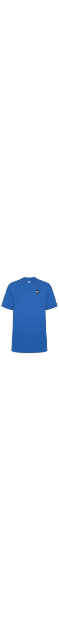 A camiseta azul é confeccionada em malha leve com alta elasticidade. A peça solta ao corpo possui gola redonda, mangas curtas e logo da marca aplicado na parte frontal e posterior.