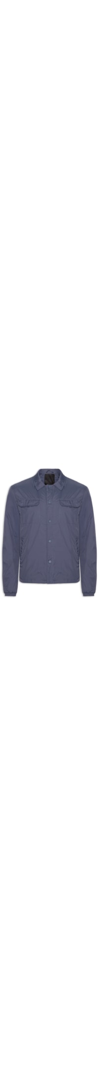 A jaqueta azul é confeccionada em nylon sem elasticidade. A peça de modelo puffer* possui colarinho clássico, mangas longas com ajuste nos punhos, bolsos frontais modelo faca, bolsos embutidos na altura do tórax com fechamento por aba sobreposta e botão de pressão, recorte na parte posterior, forro e fechamento frontal por botões.