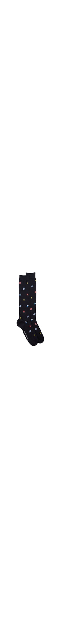 Meias Altas Em Algodão Fio De Escócia Com Estampa - Preto