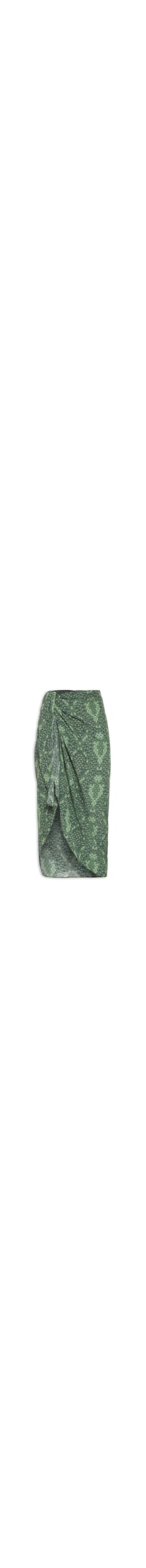 o panneaux Verde é Confeccionado Em tecido Leve Sem Elasticidade. A Peça Possui Tamanho Grande, Barra Arredondada, Faixas Laterais Estendidas Para Amarração, Estampa Abstrata Em Tons Contrastantes E Comprimento Midi.