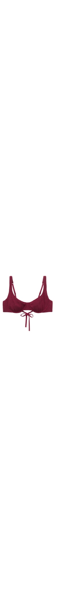 Parte de cima de biquíni balconette sem bojo, com aro. O formato estruturado das copas envolve e sustenta perfeitamente os seios, enquanto o cordão lateral permite ajustar a cobertura. Ideal para seios maiores. Confeccionada em tecido enrugado com efeito tridimensional. Alças ajustáveis e amarração fina nas costas.