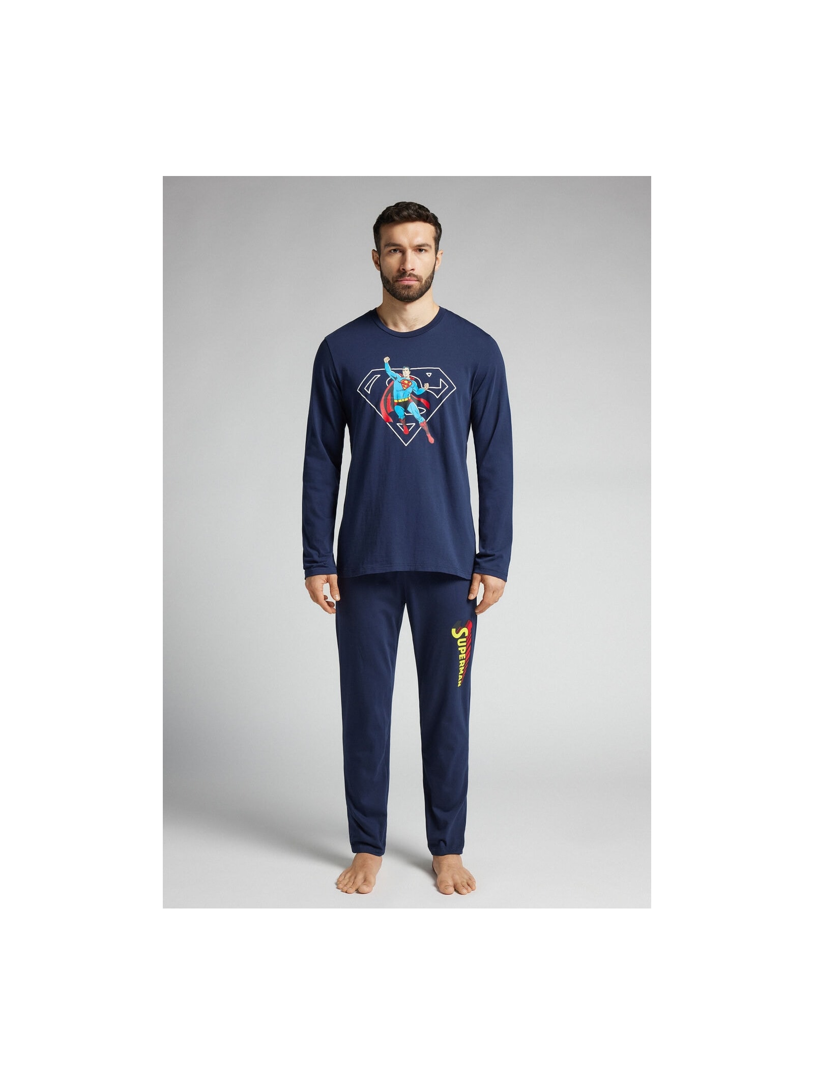 Pijama comprido em jersey de algodão, com estampa do Superman na camiseta e nas calças.