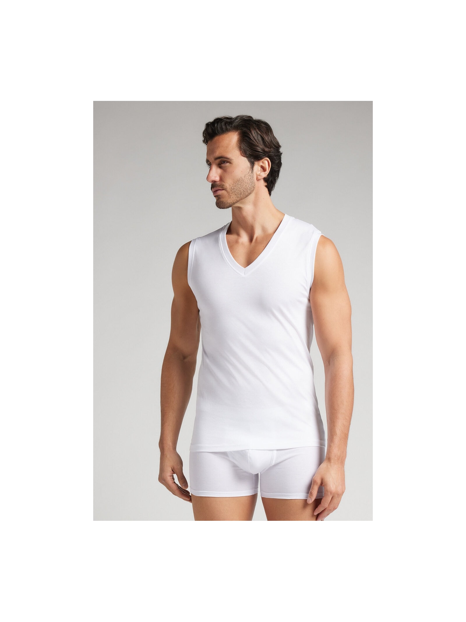 Regata confeccionada em algodão mercerizado premium. Extremamente confortável e agradável ao toque, destaca-se pelo algodão macio, fresco e com acabamento sedoso. Ideal para ser usada de forma discreta sob uma camisa levemente desabotoada.