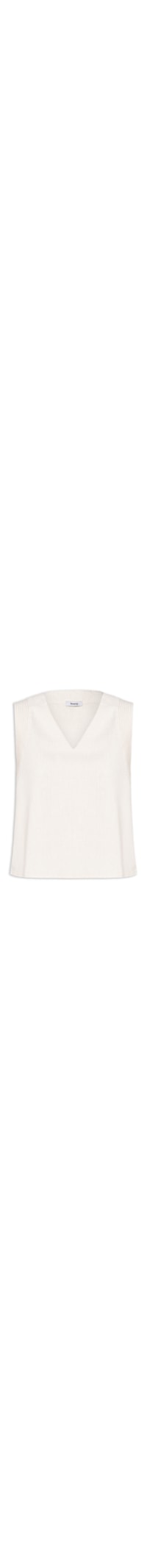 A regata bege é confeccionada em tecido leve com toque de linho e sem elasticidade. A peça solta ao corpo possui decote em V, alças médias e cavas regulares com detalhe de acabamento pespontado em cor contrastante.