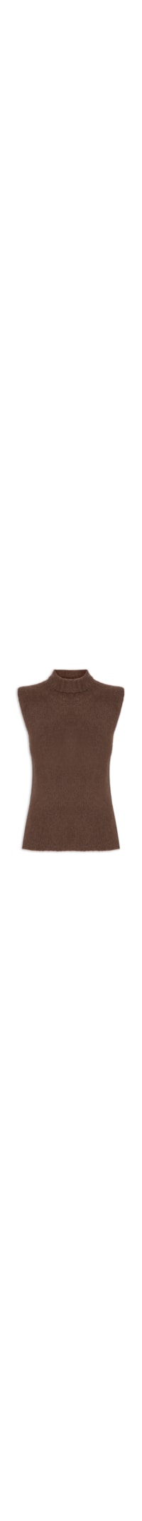 A regata marrom é confeccionada em tricot com alta elasticidade. A peça solta ao corpo possui gola alta e acabamento canelado.