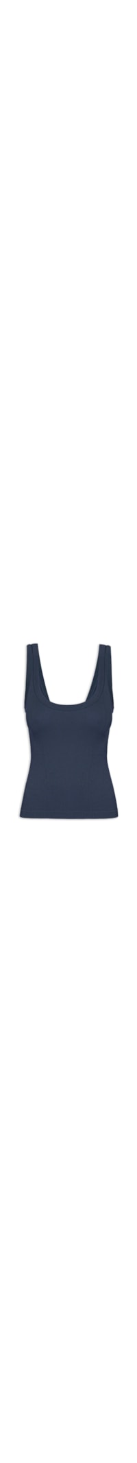 A regata azul é confeccionada em malha de poliamida com alta elasticidade. A peça justa ao corpo possui decote em U, alças largas, ombros regulares, textura canelada, comprimento regular, barra reta e acabamento canelado.