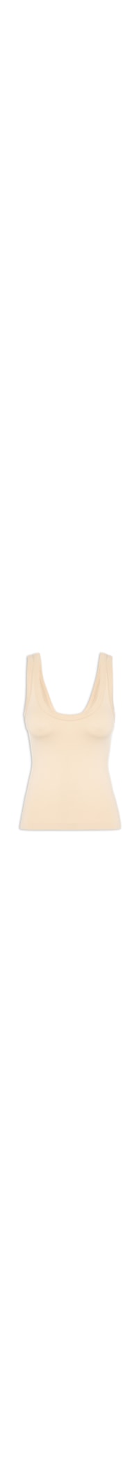 A regata bege é confeccionada em malha de poliamida com alta elasticidade. A peça justa ao corpo possui decote em U, alças largas, ombros regulares, textura canelada, comprimento regular, barra reta e acabamento canelado.