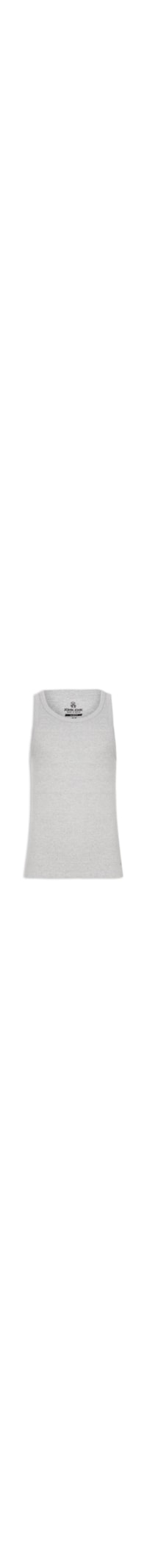A regata cinza é confeccionada em malha de algodão com alta elasticidade. A peça justa ao corpo possui gola arredondada, alças médias, cavas regulares, logo da marca aplicado em alto relevo na barra da parte posterior e acabamento canelado.
