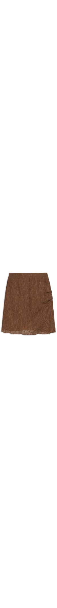 A saia marrom é confeccionada em tecido leve com baixa elasticidade. A peça justa ao corpo possui cintura alta, cós com elástico, superfície texturizada e comprimento curto.