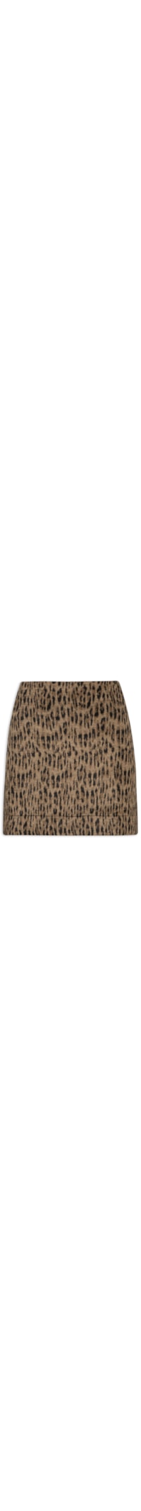 A saia animal print é confeccionada em malha encorpada com superfície com pelo e sem elasticidade. A peça justa ao corpo possui cintura alta, pences posteriores, recorte posterior, forro, comprimento curto e fechamento posterior por zíper.