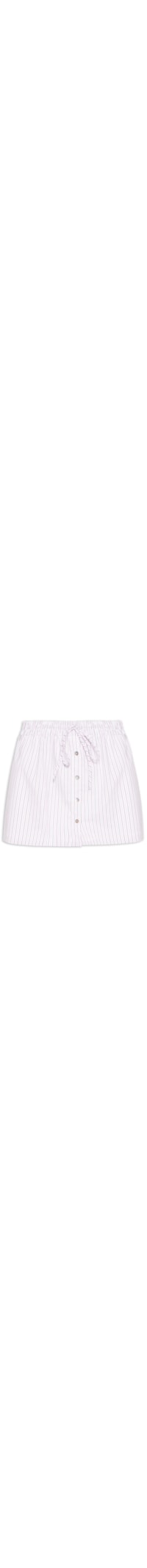 A saia rosa é confeccionada em tecido leve sem elasticidade. A peça solta ao corpo possui média, cós com elástico e cordão para ajuste, bolsos laterais, detalhe de aplicação de botões frontais, padronagem, de listras, comprimento curto e fechamento lateral por zíper.