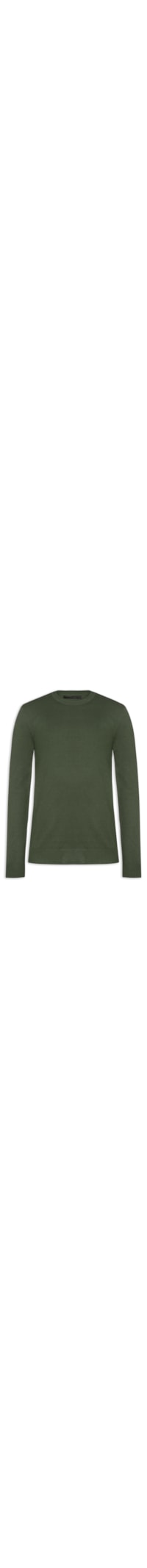 O suéter verde é confeccionado em tricot com alta elasticidade. A peça justa ao corpo possui gola arredondada, mangas longas e acabamento canelado na gola, mangas e barra.