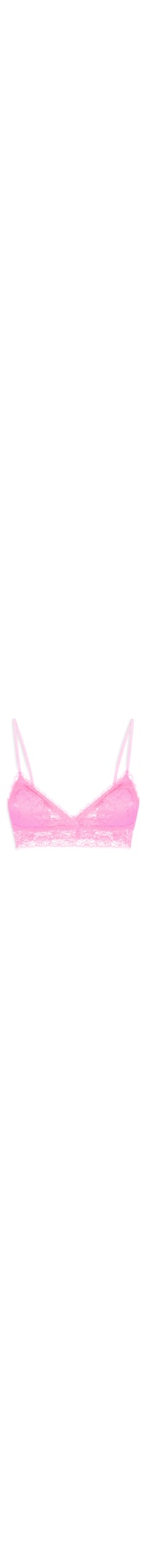 O sutiã rosa é confeccionado em renda com alta elasticidade. A peça de modelo triângulo possui decote V transpassado, alças finas com regulagem, cavas estendidas, bojo removível, laterais médias, tag da marca bordada na parte posterior e transparência.