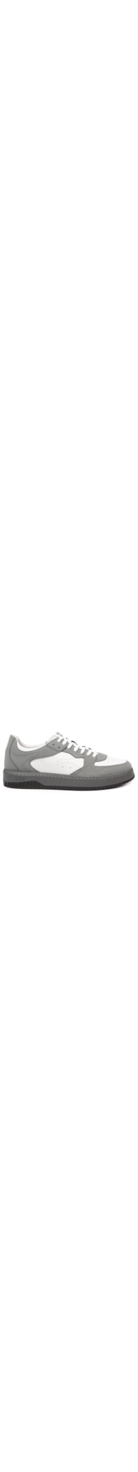 O tênis cinza é produzido por couro. A peça possui bico arredondado, cano curto, recortes sobre a superfície em cores contrastantes, perfuros frontais, recortes laterais com acabamento pespontado, nome da marca emborrachado na parte posterior, forro emborrachado, tag da marca aplicado na lingueta, palmilha macia com nome da marca em cor contrastante, entressola emborrachada, fechamento por cadarço superior.